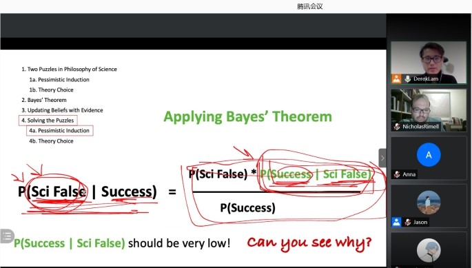 From May 17 to May 25, 2021, Derek Lam, Assistant Professor of the Department of Philosophy and Religious Studies at the University of Wisconsin, was invited to offer an international demonstration base overseas quality course, "Probability and Philosophy," for the School of Philosophy and Social Sciences through the Tencent Conference. In addition, nearly 100 teachers and students from Nanjing University, Sun Yat-sen University, Northeast China Normal University, and other universities also participated in the course.