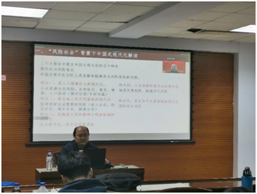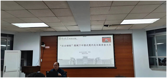 副院长芦恒教授,做了题为《“社会韧性”视域下中国式现代化与高质量发展》的党课。受新冠疫情的影响,党课采取了线上与线下相结合的形式,由H视频