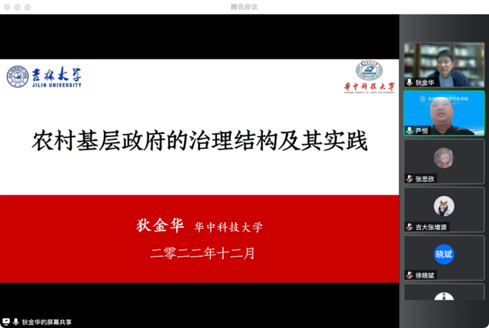 名家讲座系列”讲座第169场——《农村基层政府的治理结构及其实践》,以线上会议形式如期举行。主讲人狄金华,华中科技大学教授、博士生导师,国家级青年人才,民政部全国基层政权建设和社区治理专家委员会委员。本次讲座由副院长芦恒教授主持,院长田毅鹏教授、吴海琳教授、陈鹏教授、李晓玲副教授、孟祥丹副教授等多位教师参加了本次讲座。