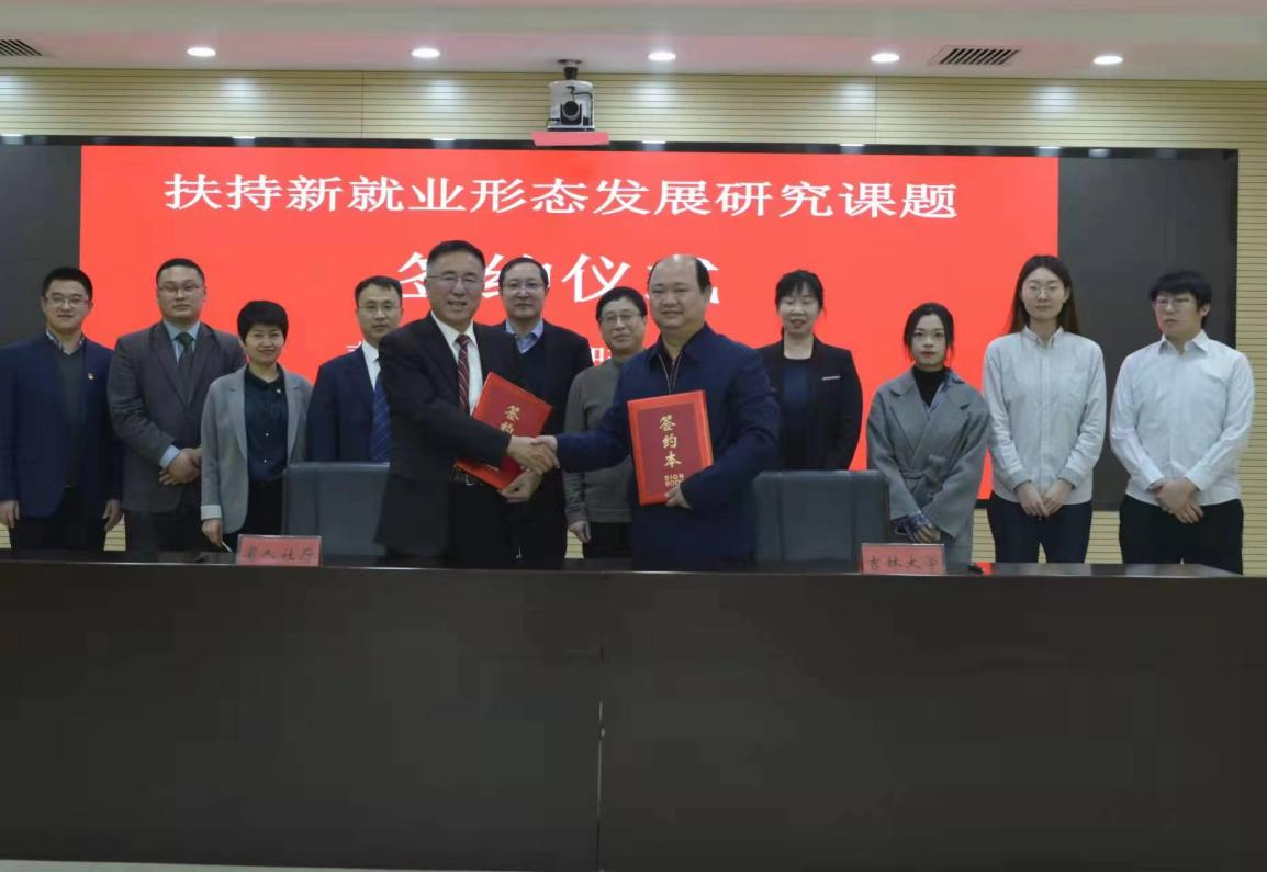 劳动与社会保障系与省人社厅在金业大厦签订《扶持新就业形态发展研究》合作研究课题协议。H视频