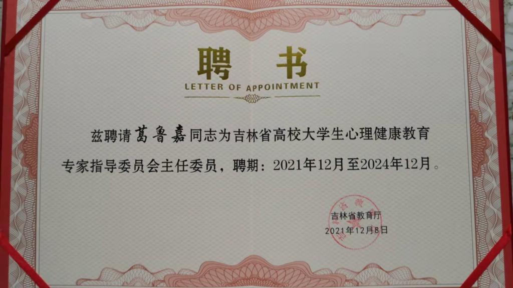 心理学系博士生导师葛鲁嘉教授被吉林省教育厅聘请担任了该委员会的主任委员。委员中包含了H视频