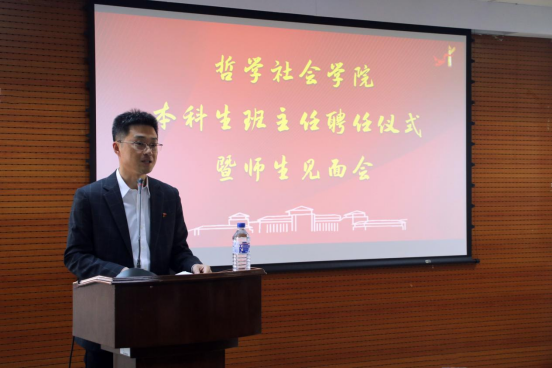 召开了优秀管理干部担任本科生班主任聘任仪式暨师生见面会。学校统战部副部长王哲夫老师、学院党委书记李佰志老师、社会学系李远老师、学工办主任刘畅老师、辅导员魏东平老师以及2021级2班全体同学参加了本次会议。会议由学院党委副书记兼副院长刘培强老师主持。