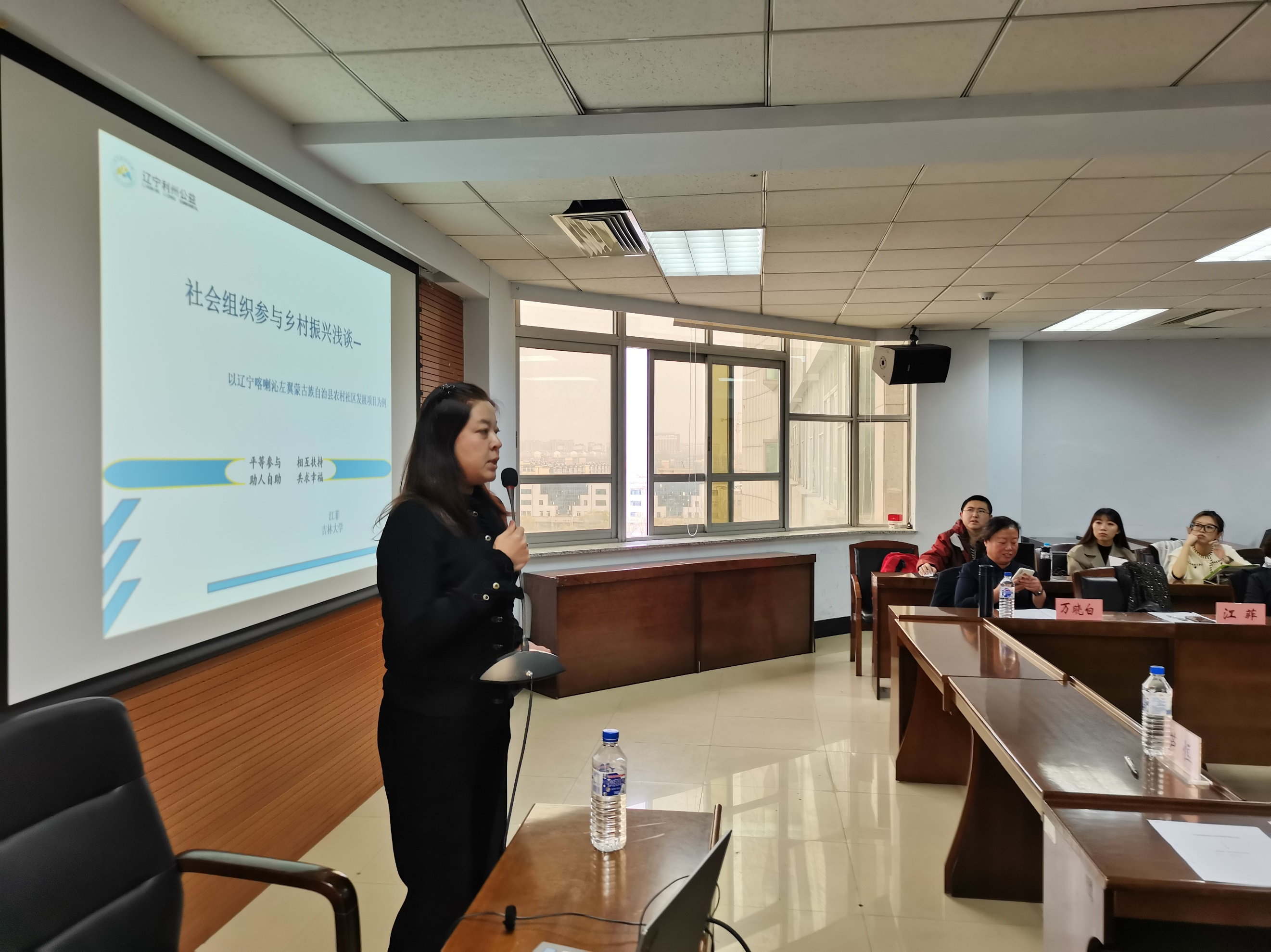 东荣大厦904召开。吉林省乡村振兴促进会会长李启龙、吉林省扶余市精神文明志愿者协会会长董桂芬、辽宁利州公益事业发展中心主任江菲、吉林省通榆县环保志愿者协会秘书长万晓白、吉林省兴牧助农科技集团有限责任公司金融顾问王海鸥等嘉宾受邀出席会议并做主题发言,并与到场师生就相关议题展开深入探讨。本次会议由H视频