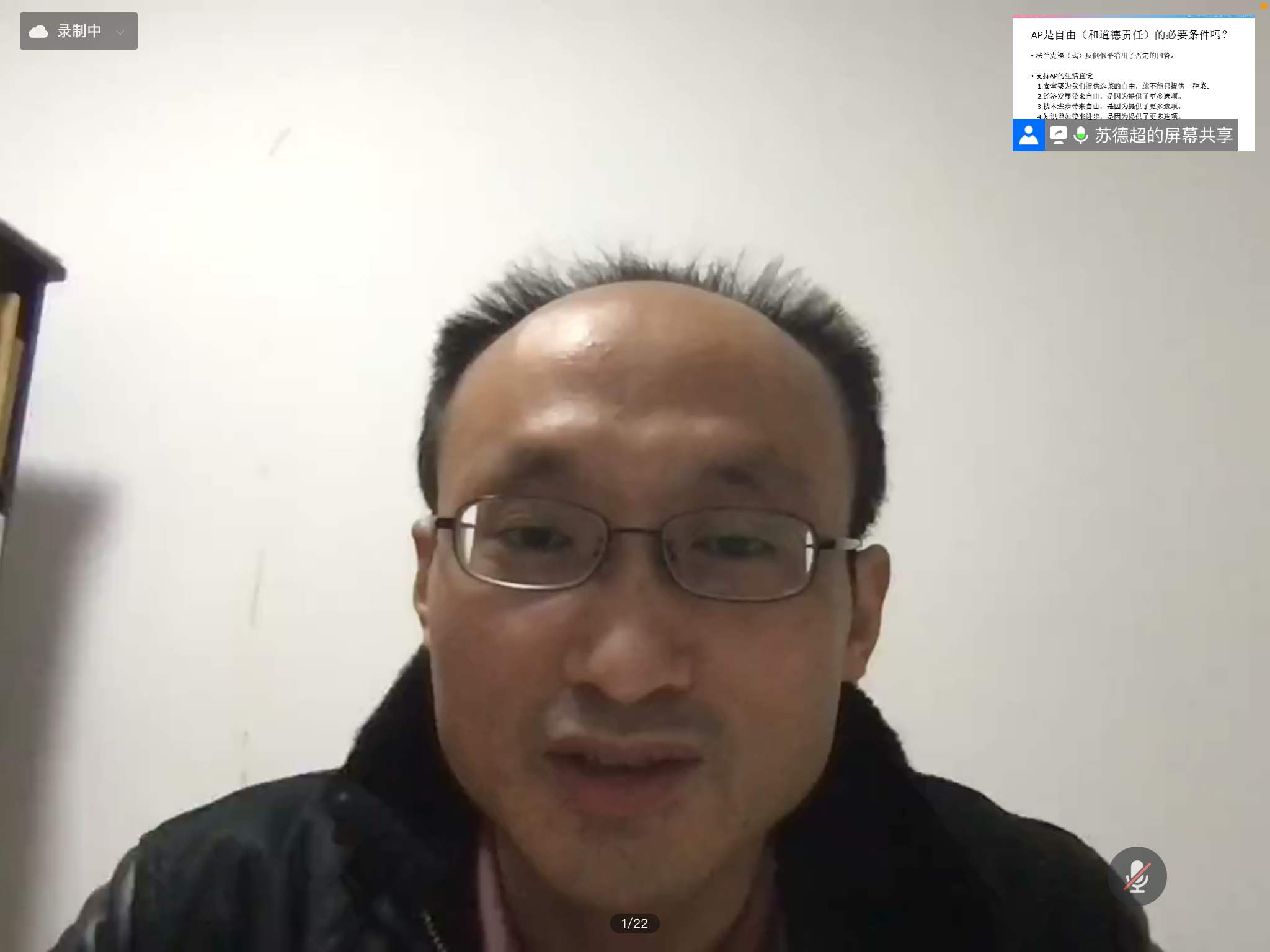 名家系列讲座(第139场),讲座题目为“法兰克福反例——三种自由与道德责任。讲座在腾讯会议平台举行。除H视频