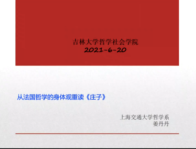 名家系列讲座第134场”在东荣大厦顺利举行。本次讲座的主题为“从法国哲学身体观的视角重读《庄子》”,主讲人为上海交通大学人文学院博士生导师,欧洲文化高等研究院研究员,国际哲学学院(CIPh巴黎)终身通信研究员、国外科研项目主任、学术委员会成员、中国区代表之一的姜丹丹教授。姜丹丹教授亦是国际哲学学院知名哲学杂志《笛卡尔街》的国际编委,国内知名丛书“轻与重”文丛的主编,近年来一直致力于中法哲学跨文化对话研究。本次讲座同时邀请了H视频
