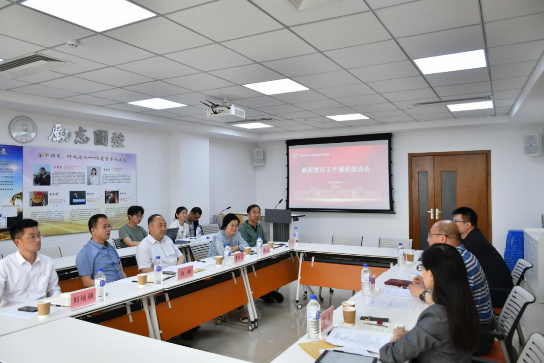 调研,围绕新闻宣传工作进行座谈交流。学院党委书记李佰志、院长白刚、副书记赵洁、副书记兼副院长刘培强、行政副院长朱文君参加座谈。
