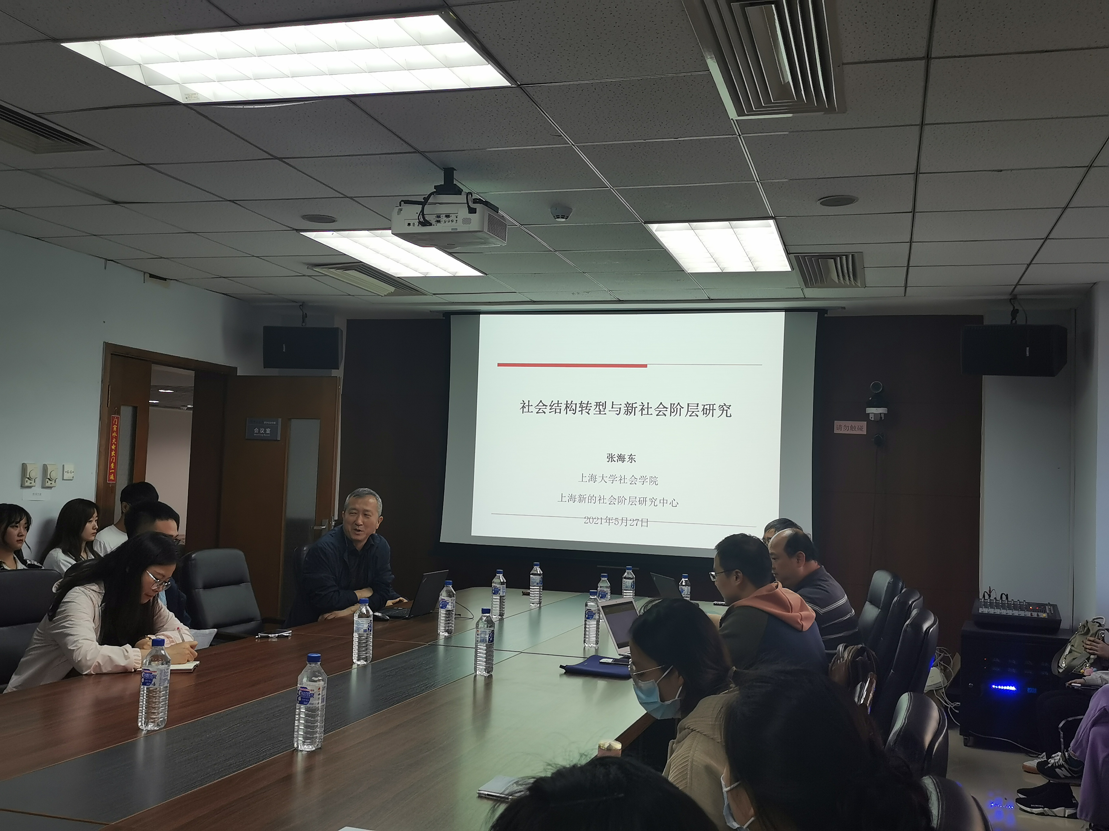 东荣大厦9楼会议室举办。上海大学社会学院、上海新的社会阶层研究中心执行主任张海东教授以“社会结构转型与新社会阶层研究”为题,为哲社师生带来了精彩的讲座。本次讲座由H视频
