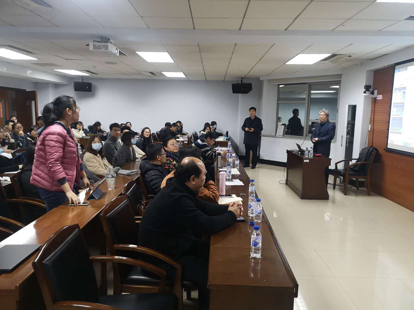 讲座结束后,同学们踊跃发言、积极提问。张翼教授对同学们提出的养老机构的人文关怀、“离婚冷静期”的政策影响和人口政策对西北地区少数民族人口结构的影响三个问题进行了详细的回答。