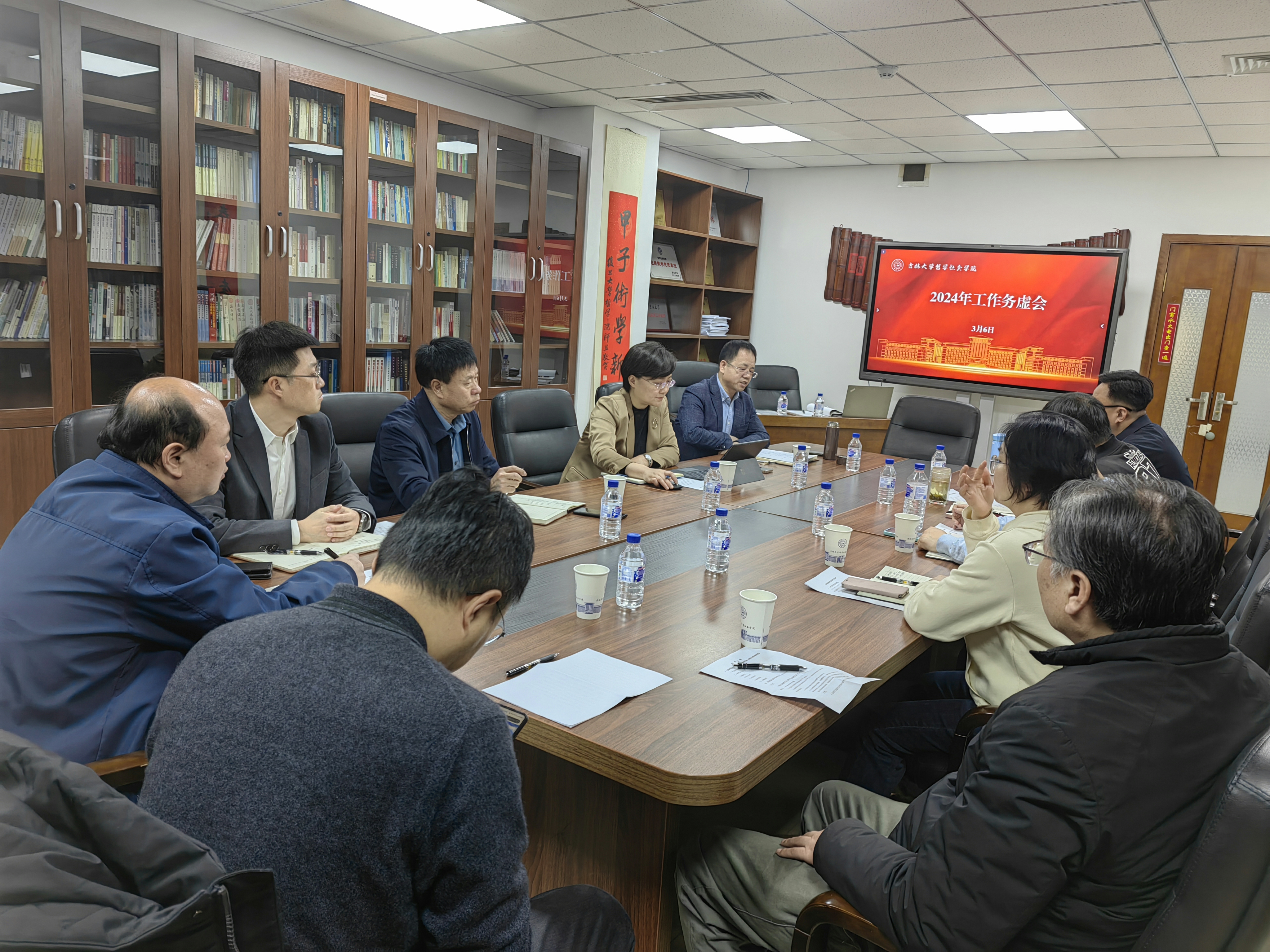在东荣909会议室召开2024年工作务虚会,以“戮力同心、砥砺奋进,以学科建设为中心,推动学院高质量发展”为主题,全体班子成员聚焦学院一流学科建设,结合分管工作,为学院高质量发展谋篇布局。学校党建联络员郭荣誉到会指导,会议由学院党委书记张晓萌主持。