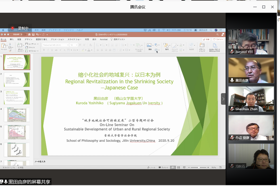 2020年9月20日下午,国家社科基金重大项目“东亚乡村振兴的社会政策比较研究”课题组召开题为“城乡地域社会的可持续发展”的线上国际专题研讨会。会议由芦恒副院长主持,项目首席专家田毅鹏院长首先介绍了项目研究进展情况,并致欢迎词。与会者围绕城乡地域社会治理、公共危机管理与社会可持续发展、城乡地域社会的可持续发展等主要议题展开了深入探讨。
