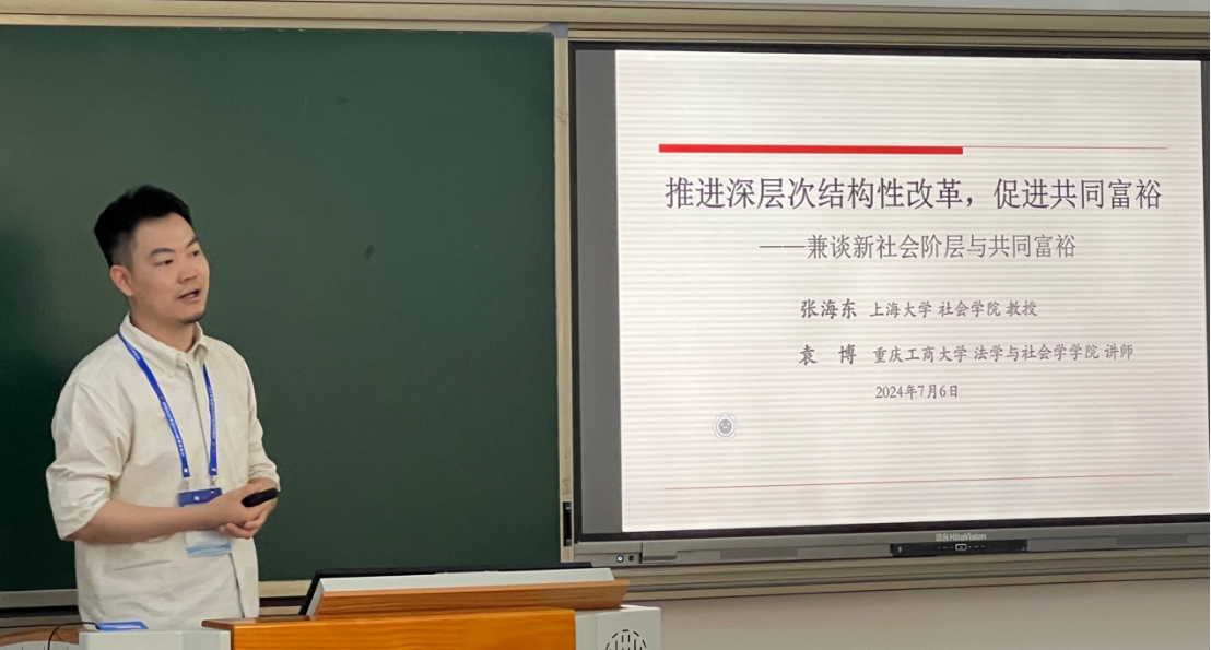 上海大学社会学院张海东教授、重庆工商大学社会学系讲师袁博作了题为《推进深层次结构性改革,促进共同富裕——兼谈新社会阶层与共同富裕》的报告。他们认为要实现共同富裕的远景目标,就必须在经济结构改革的基础上,同时推进社会层面的深层次结构性改革,破除结构性不平等因素,实现基本公共服务均等化,以增进人民福祉为首要目标。就新社会阶层而言,尽量消除各类社会结构壁垒,促进社会流动,提升与完善社会保障制度也是一个紧迫而且事关全局的大问题。