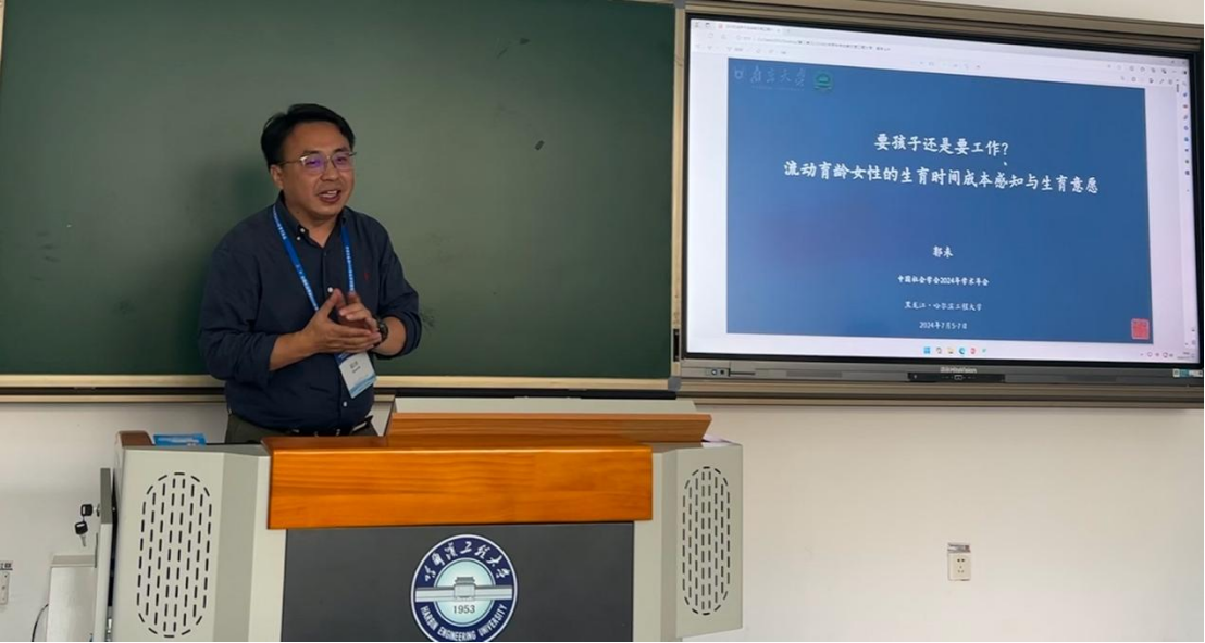 南京大学社会学院副院长郭未教授作了题为《数字时代中的流动世代:母职惩罚视角下的生育意愿》的报告。他分析了流动女性预期生育成本与其生育意愿之间的因果关联,利用产前样本和反事实产前样本计算流动女性生育时间成本,运用产后样本与反事实产后样本计算流动女性工作比例。研究发现,流动女性生育的产前和产后时间成本越高,其一孩和二孩的生育意愿越低。