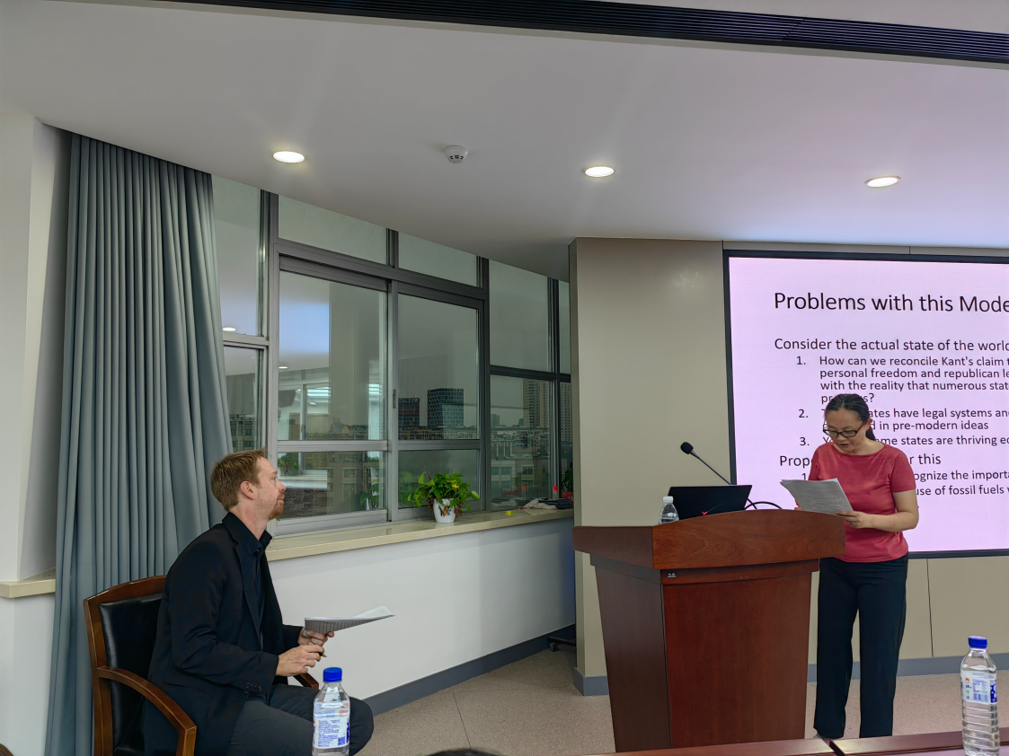 “国际合作平台学术讲座”第46讲——“Kant, History, and Progress”在东荣大厦904会议室举办。本期讲座由清华大学哲学系Andree Hahmann教授主讲,盛传捷副教授主持,山东大学谢文郁教授、中山大学江璐老师评议。