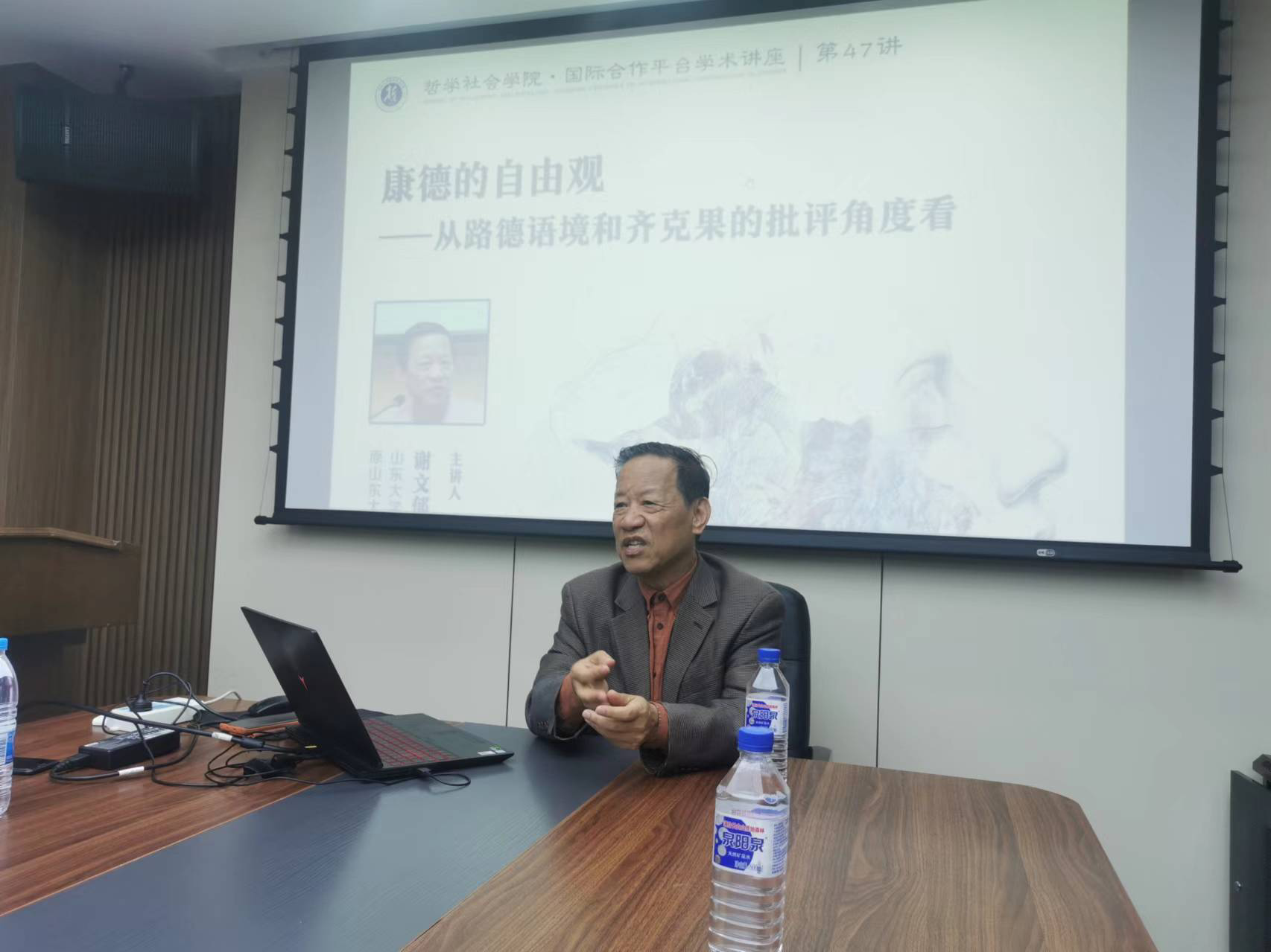 “国际合作平台学术讲座”第47讲——“康德的自由观——从路德语境和齐克果的批评角度看”在东荣大厦908会议室举办。本期讲座由山东大学哲学系谢文郁教授主讲,讲座由盛传捷副教授主持。中山大学哲学系江璐副教授、H视频