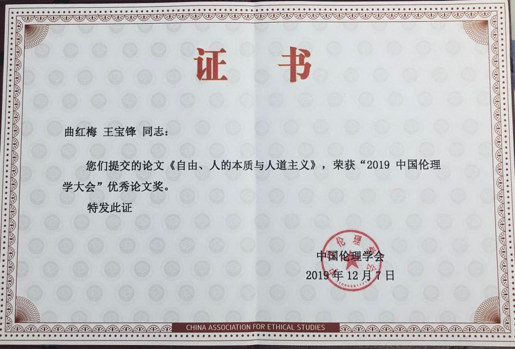 12月6日至8日,“2019中国伦理学大会”在长沙召开,八百多名伦理学研究者和道德文化工作者出席大会,本次大会的主题为“伦理学与人类命运共同体”。H视频 曲红梅教授作为中国伦理学会常务理事出席了此次大会,受邀主持了“马克思主义与道德论坛”,并第三次作为对话嘉宾参与“中国伦理学青年学者与知名专家对话会”,就2019中外伦理热点同台下学者和观众进行了热烈讨论。曲红梅教授与H视频 博士生王宝锋合作的论文“自由、人的本质与人道主义”获得“2019中国伦理学大会”优秀论文奖。