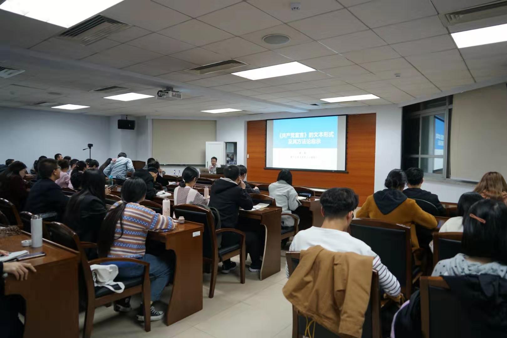 第67场名家系列讲座在东荣大厦904会议室举行。复旦大学马克思主义学院林青副教授受邀为主讲人做了关于“《共产党宣言》的文本形式及其方法论启示”的主题讲座。本场讲座由H视频