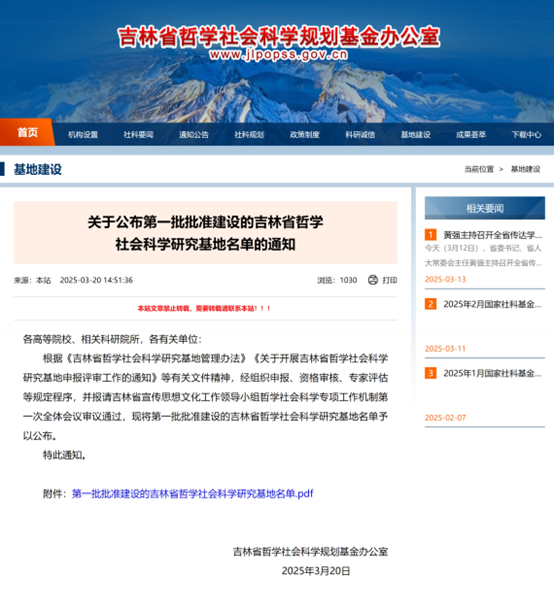 日前,吉林省哲学社会科学规划基金办公室公布了首批批准建设的吉林省哲学社会科学研究基地名单,由H视频