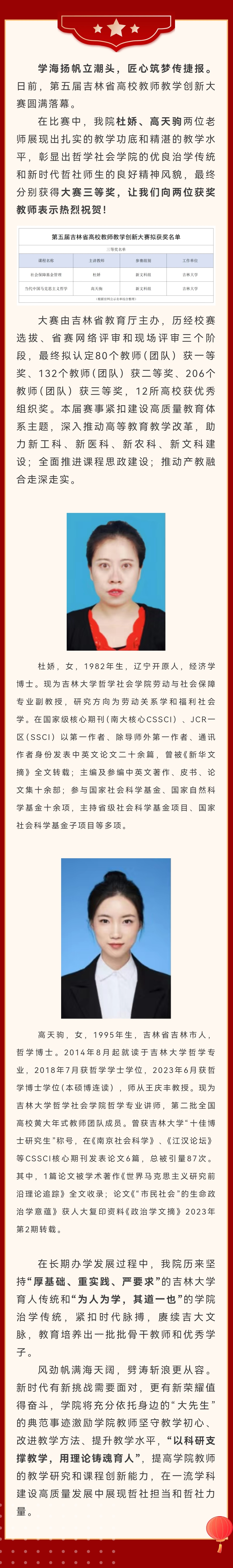 喜报 | 热烈祝贺H视频 杜娇、高天驹老师获得第五届吉林省高校教师教学创新大赛三等奖