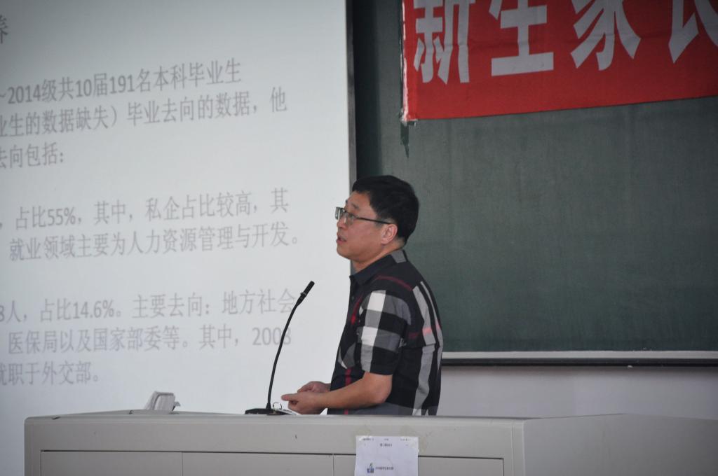 社会学系主任董运生对社会学系的两个专业都进行了介绍。将学院的社会学专业、社会工作专业的大致方向和近几年毕业生的情况进行了介绍,使新生更加了解所学专业的发展方向和学习内容,更加明确了自己的目标,受益匪浅。
