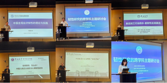 副院长芦恒,分别以《中国宏观经济韧性的理论与实践》《积极心理学视域下的心理韧性》《食品加工行业的水—能韧性及其耦合》《中国人的正义动机与心理韧性》《中国基层社会治理的韧性逻辑》为题,分别从经济韧性、心理韧性、能源韧性、社会韧性的角度,针对中国宏观经济韧性的动态识别和实践,积极心理学的学科发展,食品加工行业水资源和能源转化,中国人正义动机的韧性机制、基层社会治理的韧性要素和机制等主题进行发言。
