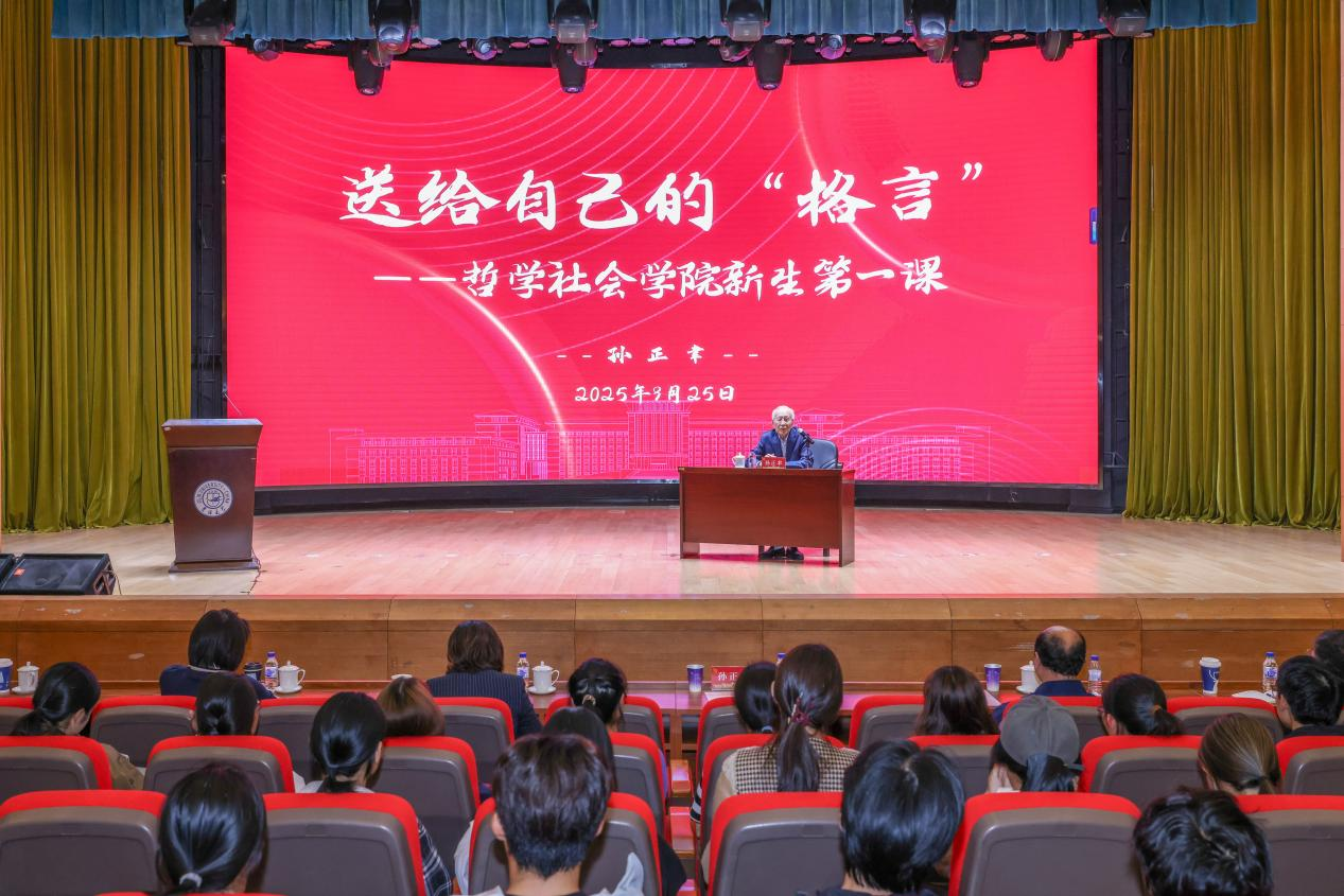 随后,在师生们热烈的掌声中,哲学社会科学资深教授孙正聿为大家做新生第一课。孙正聿教授以“送给自己的‘格言’”为题,围绕“学习、研究、能力、写作、风气、为人、境界、期待”八个维度,为在场师生描绘出从学习研究的“入门者”到有灵魂的“思考者”的成长路径。