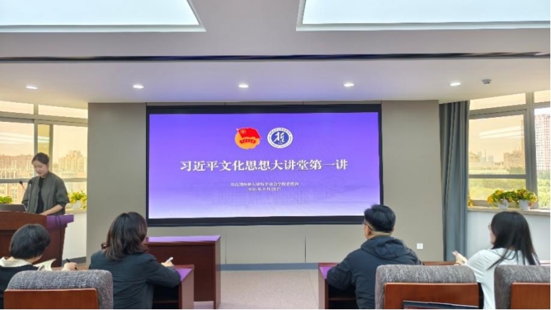 组织师生在东荣大厦904会议室集体观看学习“习近平文化思想大讲堂”第一讲。H视频