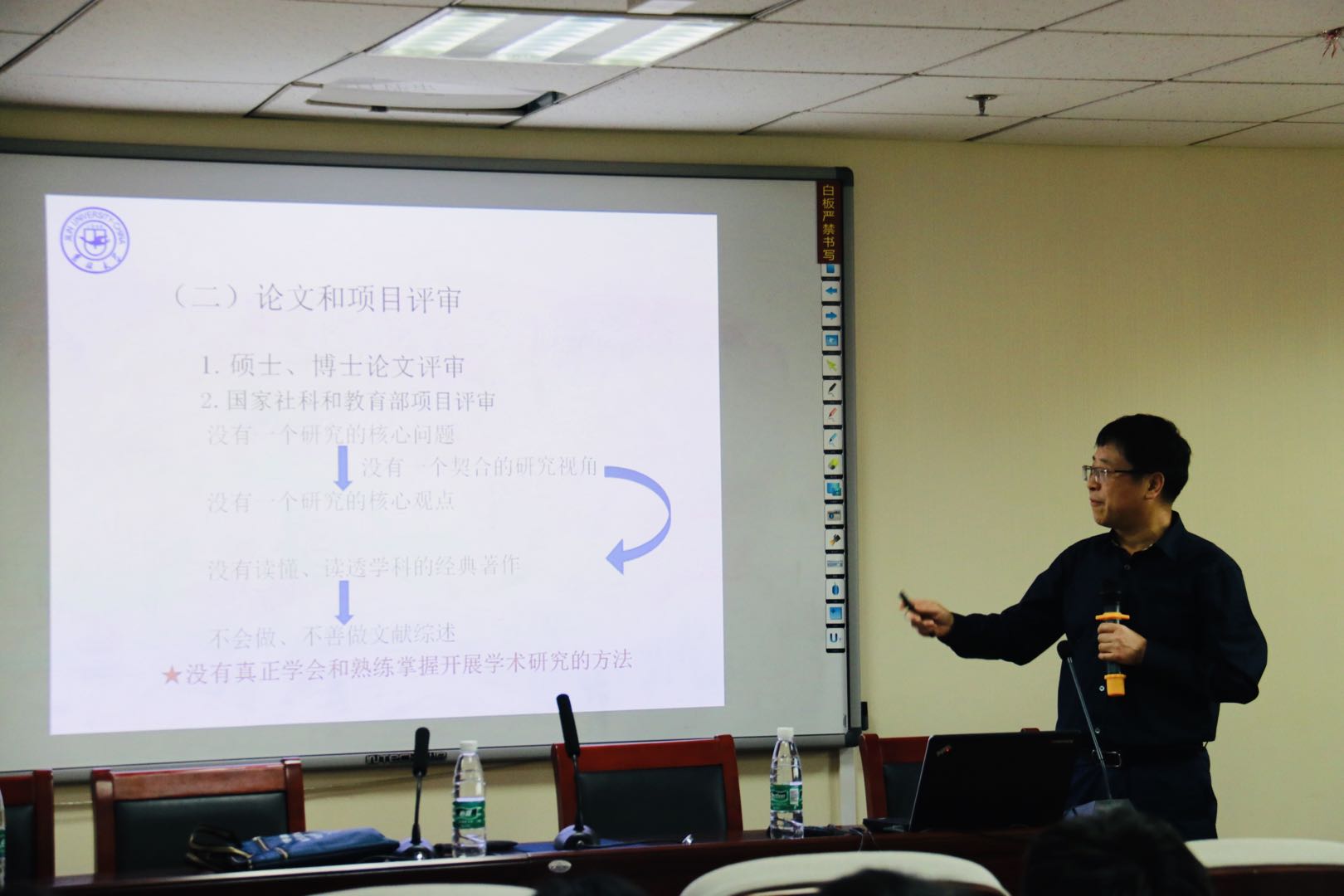 2019年5月26日,董才生教授受邀为齐鲁工业大学马克思主义学院师生做题为“学术研究的基础与关键”的学术报告,本次报告由马克思主义学院副院长王先山教授主持。董才生教授结合研究生具体的学习困惑,指出学术研究的基础是阅读经典,关键是学会做文献综述。讲座结束后,董才生教授与在场的师生进行了热烈讨论与互动。