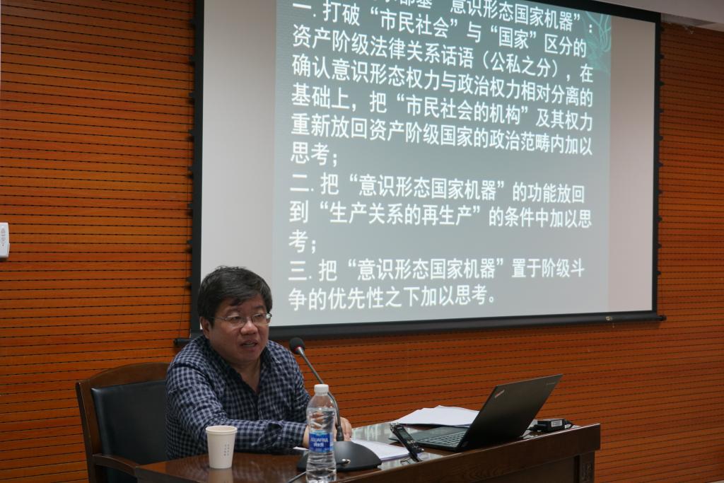哲学基础理论研究中心共同主办的学术名家讲座在东荣大厦904会议室举行。大型学术思想文库“精神译丛”及《阿尔都塞著作集》主编、葛兰西和阿尔都塞研究与翻译专家、陕西师范大学陈越副教授为我们带来题为“市民社会的斗争—从康德到葛兰西和阿尔都塞”的学术讲座。本次讲座由H视频