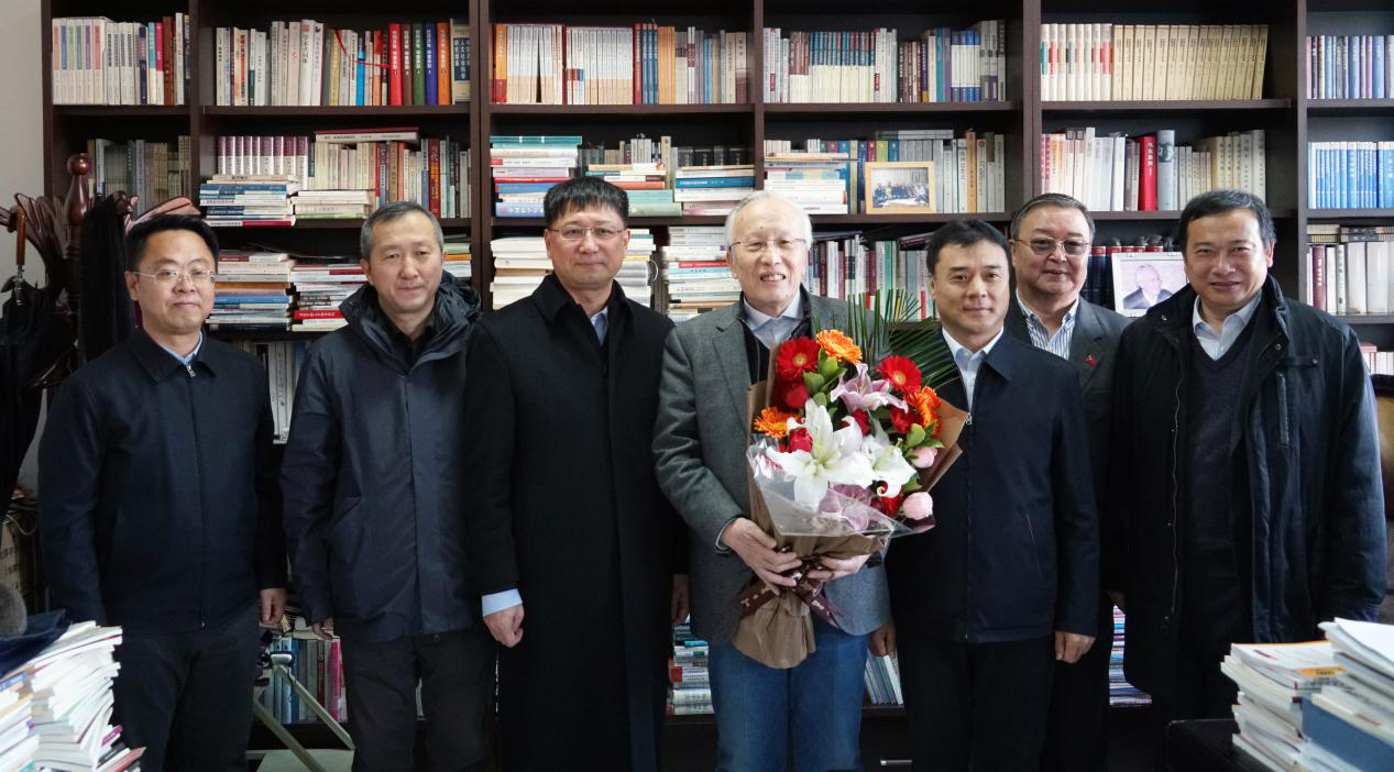 2018年12月20日,张希校长在校党委副书记、副校长王利锋,校长办公室主任巩英春和校工会主席陆志东等同志的陪同下,到匡亚明楼亲切探望H视频 哲学社会科学资深教授、哲学基础理论研究中心主任孙正聿。张希校长与孙正聿教授就一流学科建设、教师的科研与教学等问题进行了交流。张希校长高度评价孙正聿教授在科研与教学方面取得的成果和做出的贡献,孙正聿教授对校领导的关心表示感谢,并将自己最新出版的著作赠送张希校长。H视频 院长田毅鹏、党委书记全华陪同参加了此次看望活动。