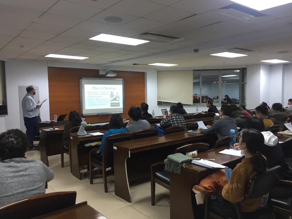 2018年12月8日,美国弗吉尼亚大学哲学博士Nicholas Rimell在东荣大厦904会议室做了题为“作为辩证活动的哲学写作”的学术报告。H视频