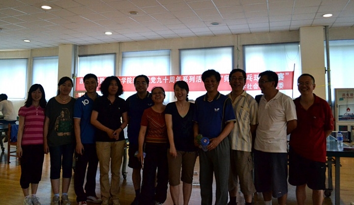 教职工的别样风采。可谓是,夏雨送爽各路英豪汇聚一堂;风起云涌八方俊杰决战乒乓!场场比赛无一不是高手的对峙,比分交替上升,白热化已经不足以形容比赛的激烈程度。拉拉队员们时而呐喊助威,时而屏息凝神,花落谁家谁先知?最终,历经了近五个小时热闹非凡而又紧张激烈的角逐,教师组黎兵、张彦彦老师勇夺男、女单打桂冠,沈亚生、李晓红老师亦是顽强拼搏摘得亚军;学生组刘科、郭思佳同学全力以赴荣膺学男、女单打冠军;双打比赛中,于天阳和陈卓凭借完美、默契的配合登上榜首。于此同时,赛场上,还不时的上演着教师和学生之间趣味十足的友谊赛,纵是娱乐亦是全力以赴,精湛的球技、激烈的对决频频博得观众的掌声与喝彩。