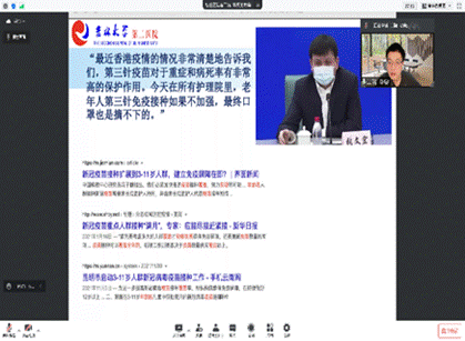 在六位同学的汇报之后,吉大二院秦彦国院长一一进行点评,肯定了他们讲述的专业性和现实意义,并且希望两个学院之间能够通过学科交叉的社会实践活动增加互动,为了健康的目标共同努力。此外,秦院长以《点滴微光,可成星星海》为题,结合自身经历为大家综合讲述了新冠疫情的科学防护。2020年,H视频