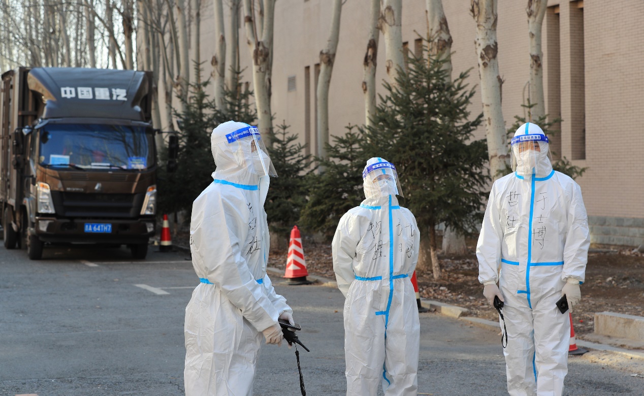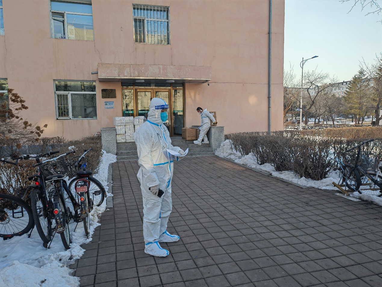“逆行”驻校第一线,物资保障展实干。接到学校实行封闭管理的通知后,他冒着风雪迅速入住学校下沉一线,参与整个中心校区的物资配送工作。冬去春来,丹阳向暖。在近两个月的驻校生活中,他每天穿着厚重的防护服,连续工作十几个小时,保障各类防疫物资及时送达。并且,他也不忘关心学生们的学习生活和思想动态,在餐食药品管理、物资处理分发的同时及时为大家释疑解惑、疏导心理,让学生们吃下了“定心丸”,凝聚起基层抗“疫”的青春同心圆。