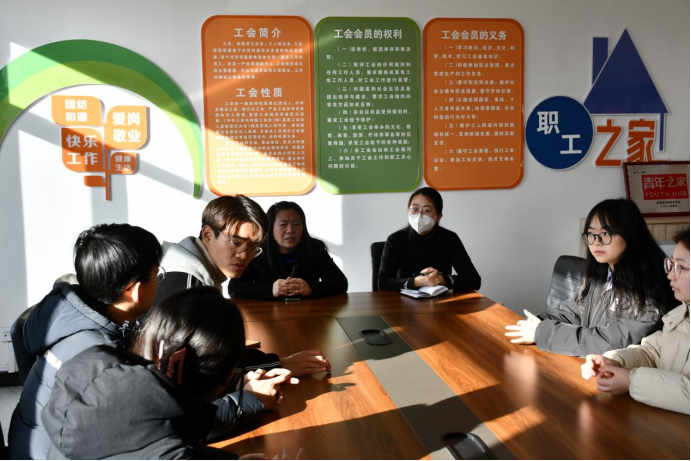 上午8时,“北辰”实践团队一行15人在新洋丰总经理毕见波的带领下参观了一楼的科技展厅,二楼和三楼的活动室、会议室、党建活动室、阅览室等,对未来一周的生活和实践进行了简要规划与安排。根据实际情况,一行人兵分两路,分别开展上午的工作。