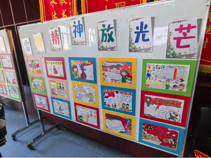 “学雷锋”志愿服务团队的成员们走上台前,将准备好的学习雷锋精神书籍赠予学校师生,随后观看了由新营小学同学们表演的文艺节目和绘制的手抄报等宣传展品。