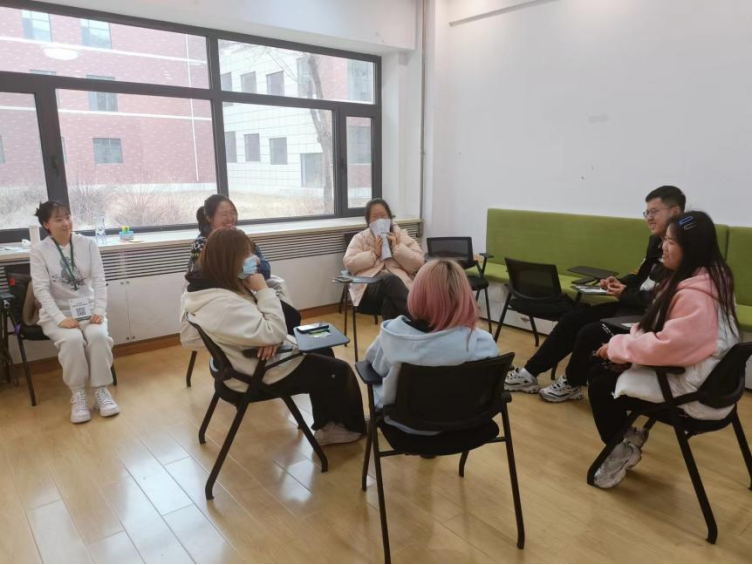 第四个环节是“情景剧编演”。以小组为单位围圈坐下,组长询问大家近期遇到过什么烦恼?或者有什么困惑?大家将烦恼写在纸条上,每组根据纸条上描述的内容编排一个不超过5分钟的情景剧,可以在剧中给出烦恼解决方法,也可以只是把这个烦恼表达出来。拥有该烦恼的本人可以作为主角参演也可以作为导演编排情景剧。每组情景剧表演结束,其他组同学都自愿发言,讲述个人看法,谈个人体会。主角表达、觉察、正视、体验和反思,在参与演出、分享环节有机会宣泄,提供多元视角,具有情感体验。