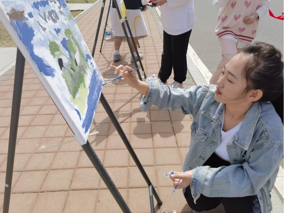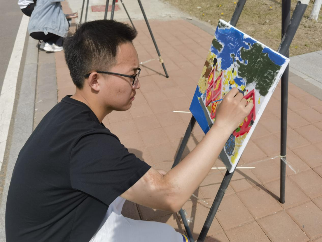 志愿者同学们积极引导参与活动的师生们在事先准备完毕的画布上挥动画笔,留下青春的色彩。