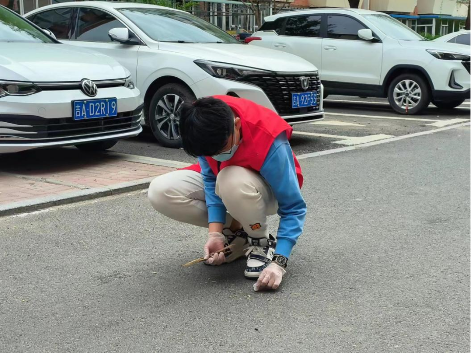志愿者同学们统一身着红马甲,以积极饱满的精神风貌与高度负责的志愿精神,深入社区的路边、街角以及楼道,开展拾取垃圾、清除广告等环境打扫工作,同时为社区居民宣传垃圾分类的相关知识。