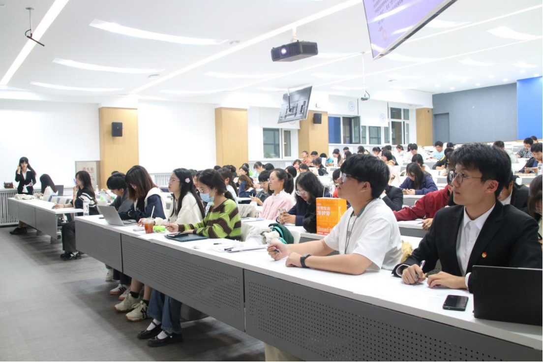 在青春激扬的音乐声中,主持人向大家生动讲述了新时代十年,我们经历了对党和人民事业具有重大现实意义和深远历史意义的三件大事,党和国家事业取得新的历史性成就、发生历史性变革,我国迈上全面建设社会主义国家新征程;广大团员、青年深入理解新时代十年伟大变革对于深化主题教育、开展自我教育具有重要意义。随后,主持人向大家介绍了本次比赛的各位评委,并对23级同学们的到来表示了热烈欢迎,至此微团课比赛正式拉开帷幕。
