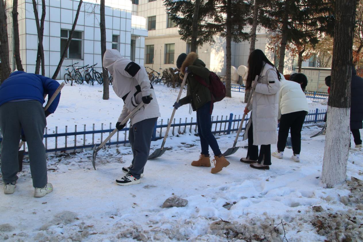 组织本科生各党支部学生党员、各学生组织和M·M学习研究会学生成员、各年级各班级主要负责人和2023级本科生“星火燎原”积极分子共计50余人,利用课余休息时间开展路面积雪清扫活动。