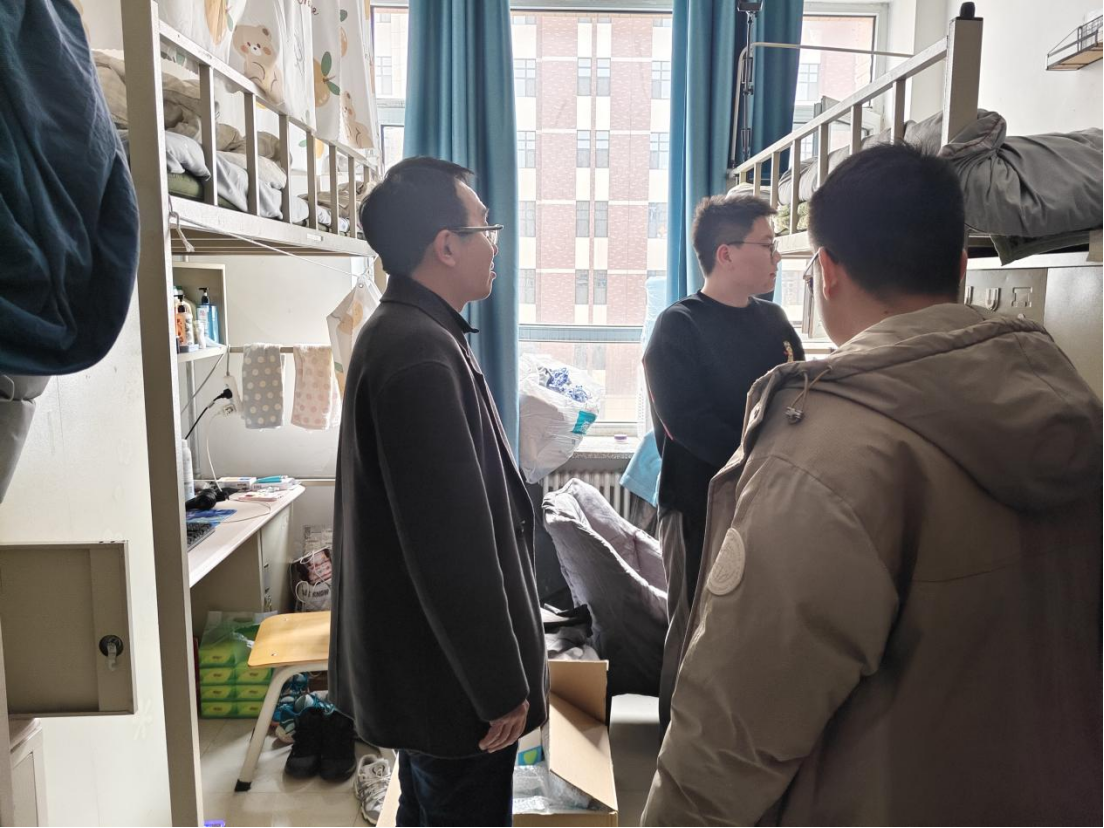 假期将至,为切实加强学院本科生动态管理,提升学生安全意识,强化学生宿舍教育管理,培养学生良好的学习态度和生活习惯,4月3日,学院党委副书记兼副院长朱大卫老师带领学生工作办公室各位老师共同前往中心校区北苑二公寓和南苑三、四公寓,对H视频