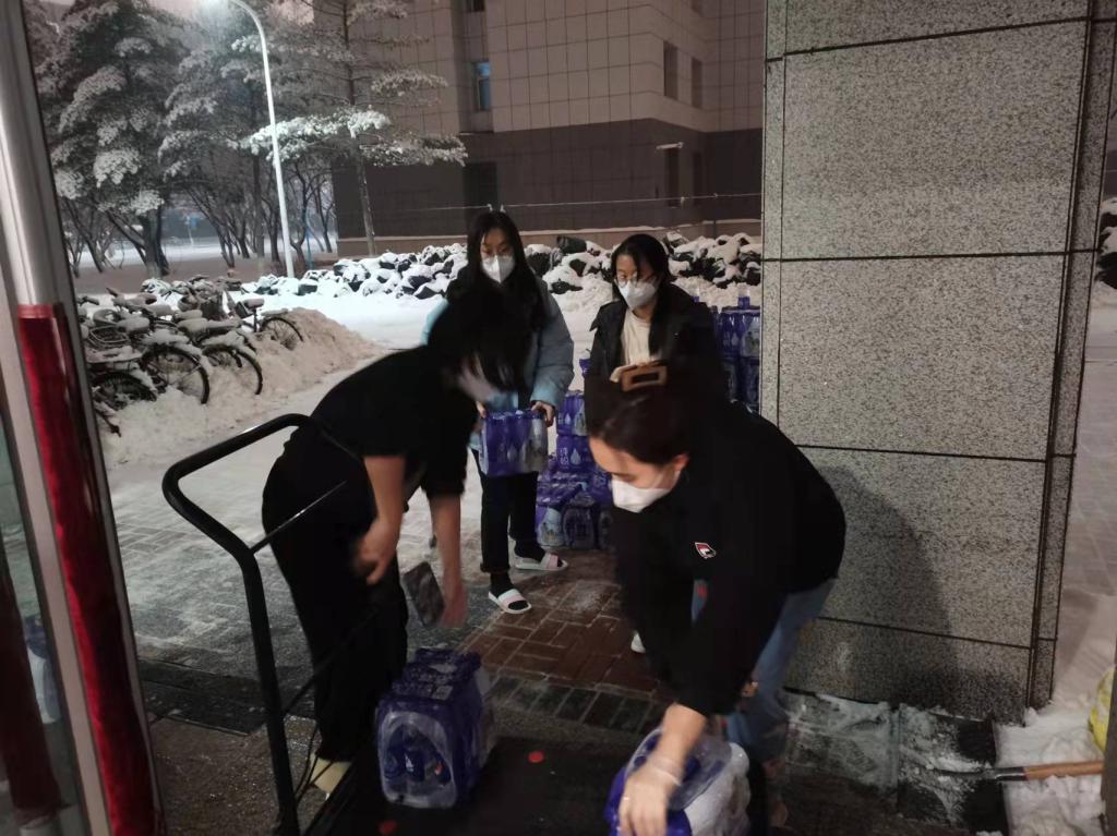 同学们迅速组成了一支近两百人的志愿者团队,女同学们巾帼不让须眉,瘦弱的身躯中爆发出强大的力量——几位志愿者需要搬着八个大箱子上到六楼,来回上上下下数十次——这些志愿者们一趟又一趟的忙碌,在室外零下几度的温度中,汗水打湿了衣服。在完成了自己的任务后,H视频