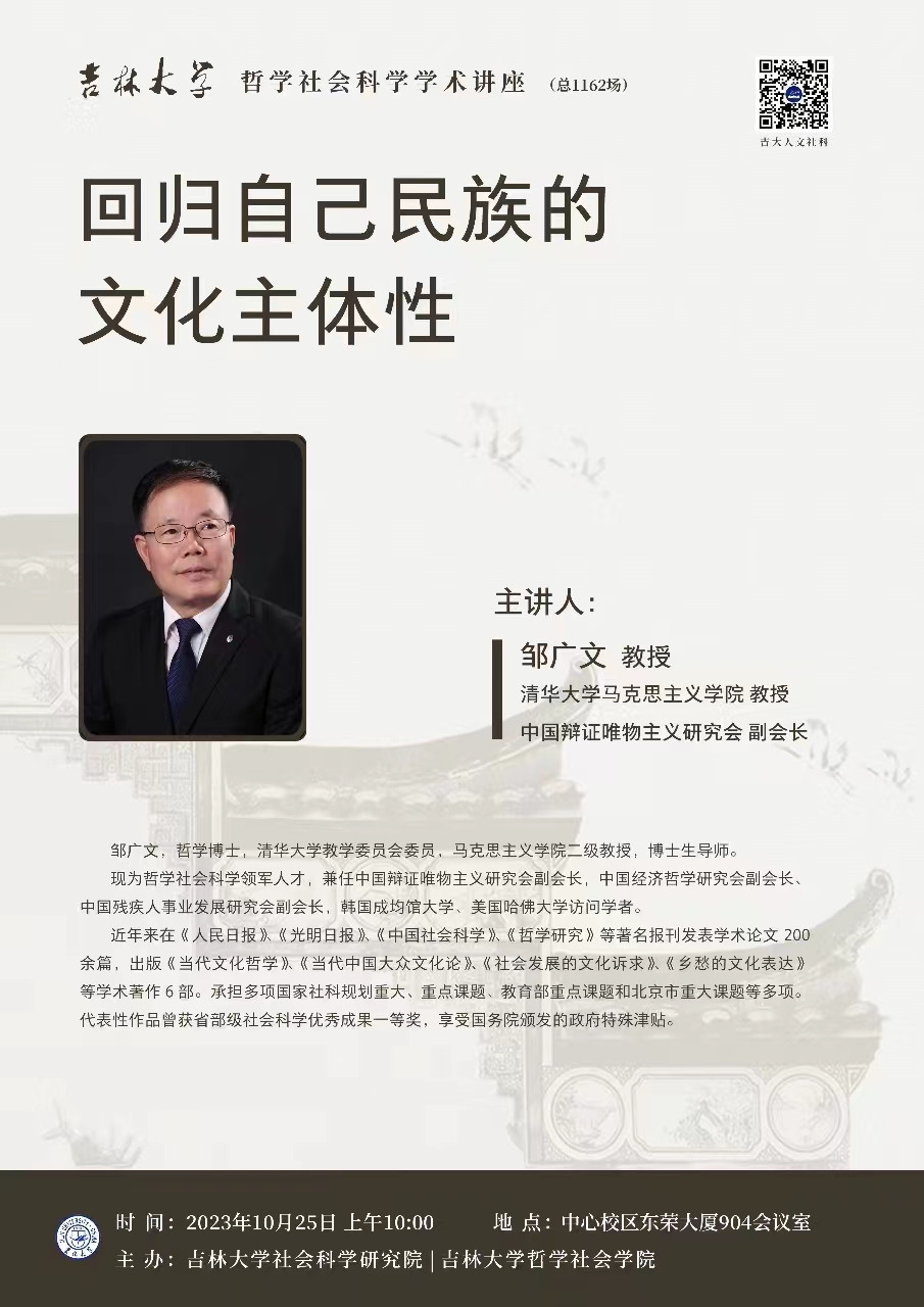 H视频 哲学社会科学学术讲座(总1162场)邹广文:回归自己民族的文化主体性