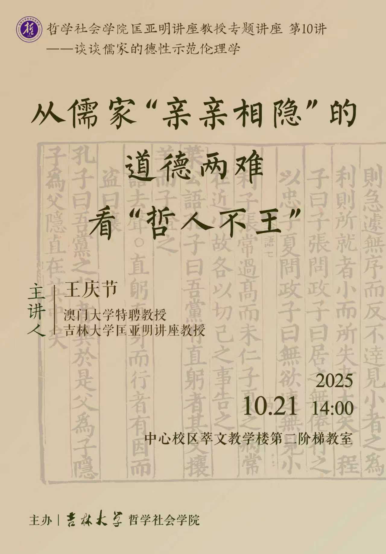 【H视频 匡亚明讲座教授专题讲座第9-11讲】王庆节: 谈谈儒家的德性示范伦理学