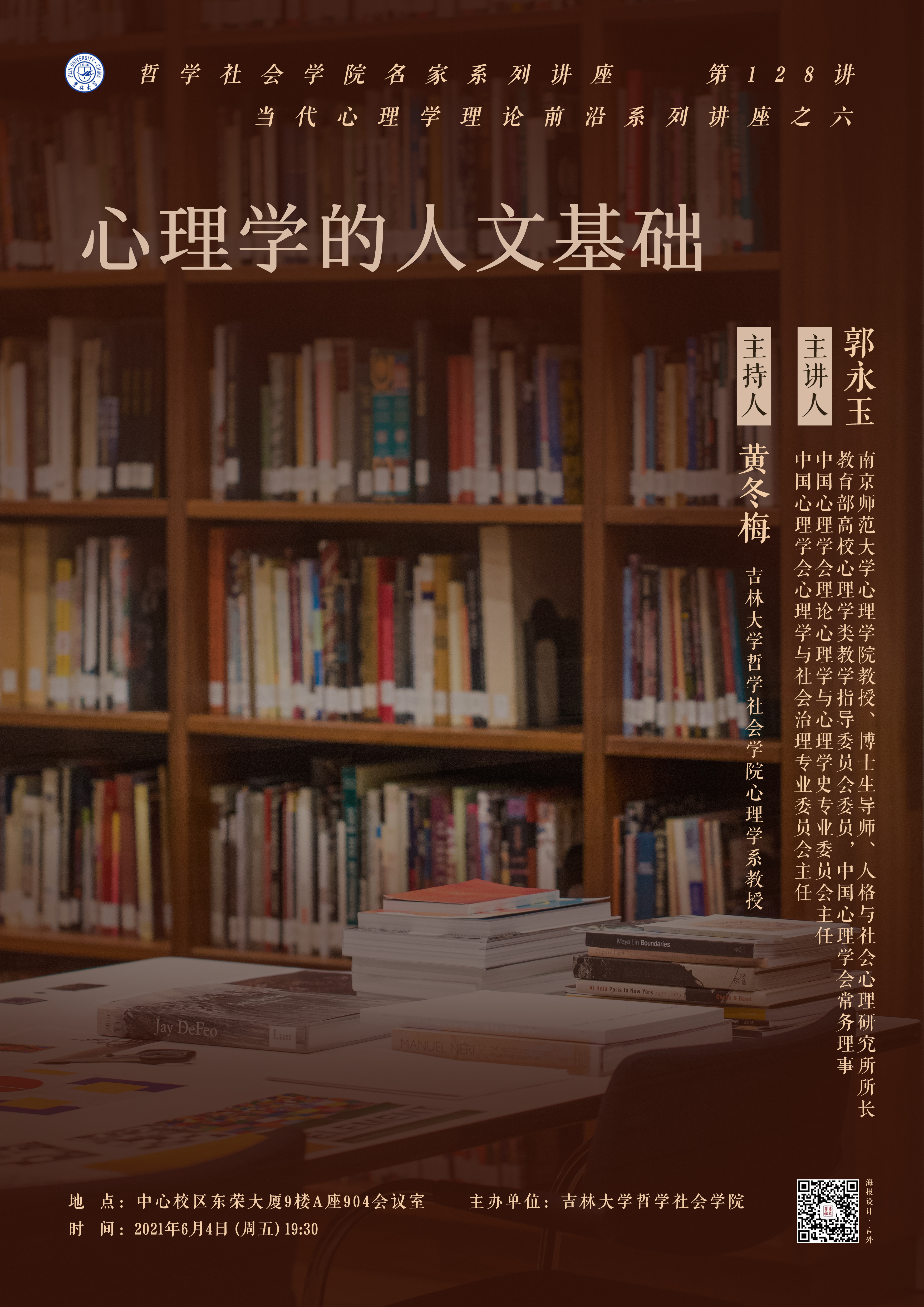 【H视频 名家系列讲座第128场】【当代心理学理论前沿系列讲座之六】 郭永玉:心理学的人文基础