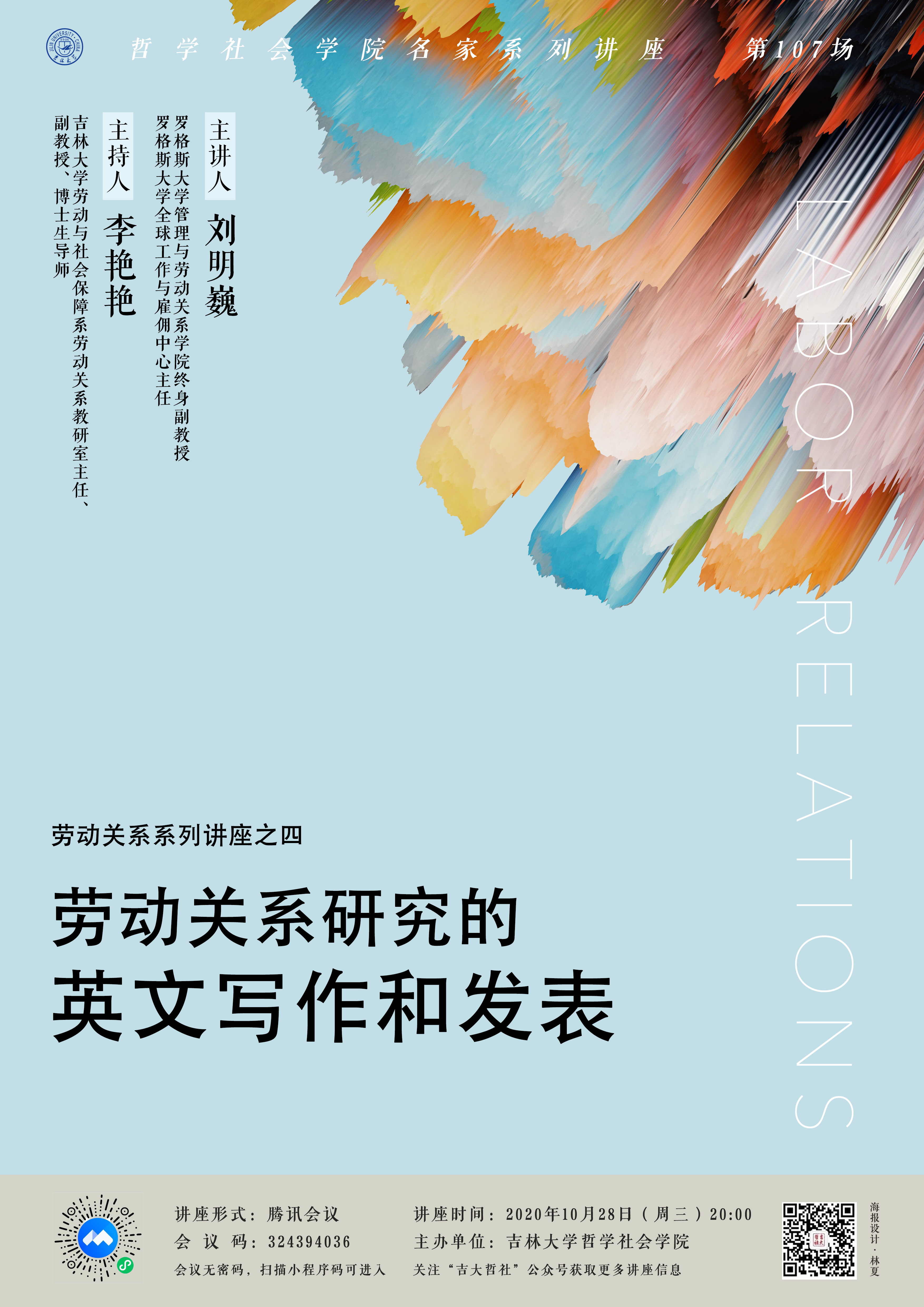 【H视频 名家系列讲座第107场】刘明巍:劳动关系研究的英文写作和发表