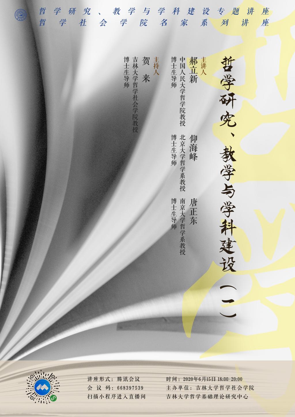 讲座题目: 哲学研究、教学与学科建设(一)