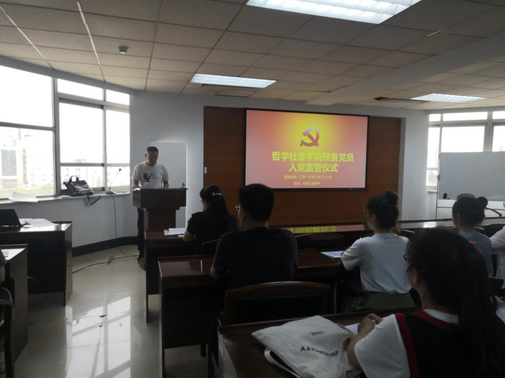 新发展的28名预备党员宣誓仪式在东荣大厦904室顺利召开,并取得了圆满成功。学院党委副书记兼副院长赵洁同志、党委副书记张俊峰同志以及全体新发展的预备党员、入党积极分子出席了本次宣誓仪式。会议由H视频