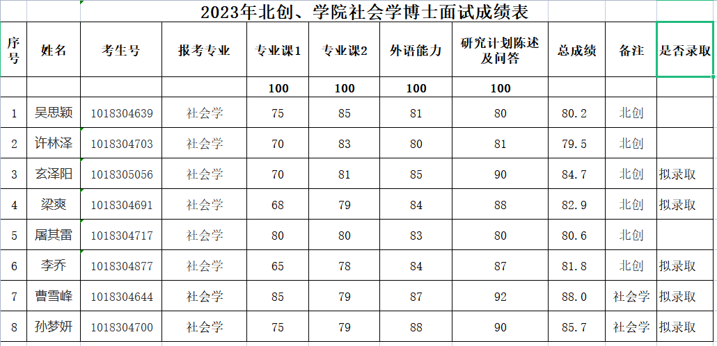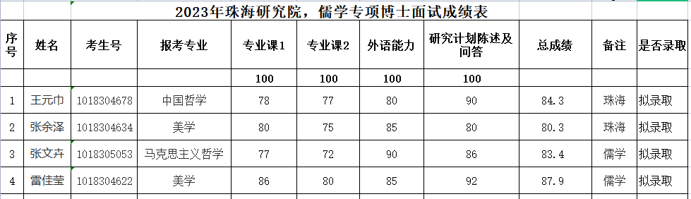 经H视频 组织专家组审查和复试考核,现将H视频 2023年珠海研究院(原南方研究院)、“中华优秀传统文化(包括儒学)专项计划”、创新发展研究院(北京)、学院社会学专业博士复试成绩及拟录取名单予以公示,公示期为2023年5月26日至2023年5月28日。如有异议,请于公示期内向H视频 反映。