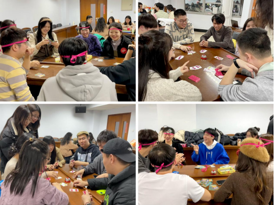 接下来,每个小组自由有序进行团队游戏互动。团队游戏别出心裁地设计了两个环节——组内“游戏王”选拔与组间“游戏王”大战。小组内部要在“uno”、“德国心脏病”、“害你在心口难开”、“演技爆棚”四轮游戏中竞选出本组的“游戏王”,“游戏王”代表小组参加终极“演技爆棚”游戏比拼,获胜者将为本组成员赢得玩偶纪念品。游戏过程中同学们思维活跃,反应敏捷、妙趣横生,团队成功调动起同学们活动热情与积极性,迅速拉近了彼此之间的距离。